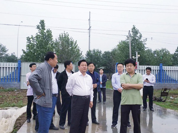 查看更多2018年7月19日,縣長王成宗(中)、開發(fā)區(qū)主任候會然(右一)在新公司施工現(xiàn)場視察工作